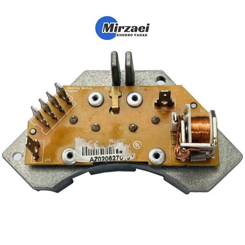 عملکرد مدول بخاری و مقاومت فن سرعت فن سیستم تهویه خودرو (بخاری یا کولر) به وسیله قطعه مقاومت فن یا مدول بخاری (ماژول کنترل فن) تنظیم میشود. تفاوت این دو در این است که مقاومت فن ساختار ساده تری دارد و مدول بخاری (ماژول کنترل فن) سیستم پیچیده تری دارد. اما وظیفه هر دو یکی است. در بعضی خودروها مقاومت فن و در بعضی مدول بخاری (ماژول کنترل فن) استفاده می شود. رایج ترین مشکلی که در صورت خرابی این قطعه به وجود می آید این است که سرعت فن بخاری یا کولر تنظیم نمیشود و فن یا فقط در آخرین دور کار می کند و یا کلا روشن نمیشود. از دلایل عمده خرابی مدول بخاری می توان به پوسیدگی در یکی از اجزای سیستم تهویه و یا گرم شدن بیش از حد این قطعه اشاره کرد. یکی از اصلی ترین عوامل ایجاد خرابی وجود مشکل در موتور فن بخاری است. اگر که بلبرینگ های موتور فن خراب باشند و مقاومت در چرخش آن ایجاد کنند و یا قطعه ای جلوی گردش پروانه موتور فن را بگیرد باعث میشود که موتور سخت کار کند و جریان برق بیشتری را بکشد و در اثر این جریان بالاتر مقاومت فن یا مدول کنترل بخاری دچار آسیب میشود و میسوزد و مشکلاتی که ذکر کردیم بوجود می آیند. پس زمانی که میبینیم مدول بخاری خراب شده و اقدام به تعویض آن میکنیم ضروریست که مجموعه موتور بخاری و پره های فن هم چک شوند. اگر موتور فن به سختی میچرخد قسمتی از آن دچار پوسیدگی شده یا خیلی کثیف شده است لازم است ابتدا آن ایراد بر طرف بشه تا مدول بخاری که تازه نصب کردیم دچار آسیب نشود. در این قطعه با تغییر مقاومت، جریان ورودی به موتور فن تغییر می کند. به عنوان مثال، در این شکل ساختار ساده ای از یک مقاومت فن را می بینیم. در این مدار برقی که از باتری یا دینام شروع به جریان می کند، زمانی که ما درجه فن را در آخرین شماره میگذاریم، میتواند به صورت مستقیم به موتور فن بخاری وصل شود. در این حالت بیشترین جریان برق در موتور را داریم و موتور فن با بیشترین سرعت می چرخد. حالا می خواهیم سرعت گردش را کم کنیم و آن را یک درجه پایین تر می گذاریم. وقتی سرعت گردش یک درجه پایین تر باشد، مقاومت r4 وارد مدار می شود و جریان ورودی به موتور مقداری کاهش پیدا می کند. به همین ترتیب وقتی موتور روی دور کند یعنی دور یک می گذاریم مقاومت های r4 و r3 و r2 همگی وارد مدار می شوند و جریان ورودی به موتور خیلی کمتر و سرعت گردش هم کم میشه. همان طور که در مطالب بالاتر ذکر کردیم، در بسیاری از موارد وقتی که مقاومت فن خراب باشد موتور فقط با سرعت آخرین درجه کار می کند. با توجه به شکل این موضوع به دلیل اتصال مستقیم برق خودرو به موتور فن است و مقاومتی در مدار نیست.